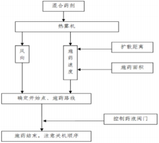 該技術利用熱霧機械啟動后形成的高溫高壓氣體將農(nóng)藥及熱霧穩(wěn)定劑形成 含藥熱霧團,在目標空間內(nèi)形成氣溶膠,當靶標接觸后達到病蟲害防治效果。